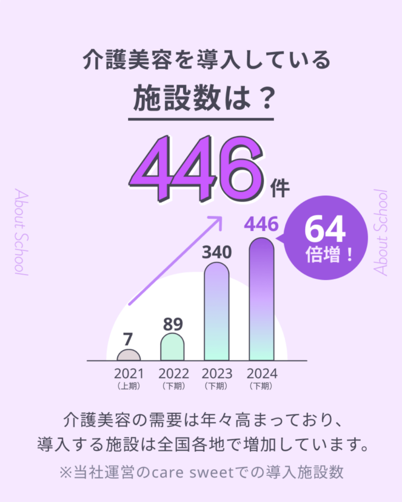 【引用】数字で見る介護美容研究所 | 介護美容研究所:https://academybc.jp/numbers/(株式会社ミライプロジェクト調べ)