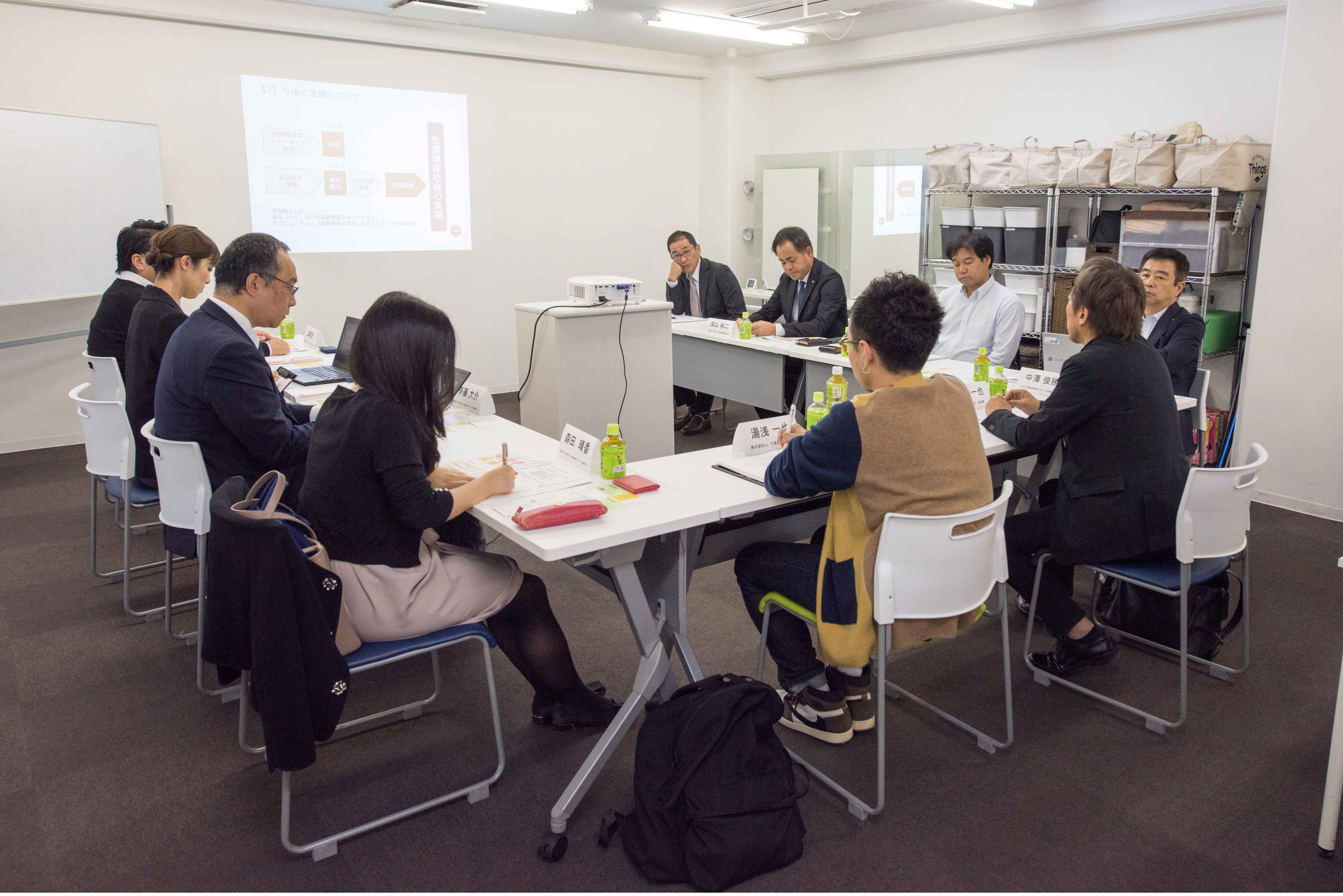 この委員会は、8月に採択した経済産業省 令和元年度健康寿命延伸産業創出推進事業 (ヘルスケアサービス品質評価構築支援事業)にて、訪問理美容の衛生管理・資格要件以外のガイドラインを策定すべく、介護業界、美容業界の皆様と審議・合意をしていく場となります。
